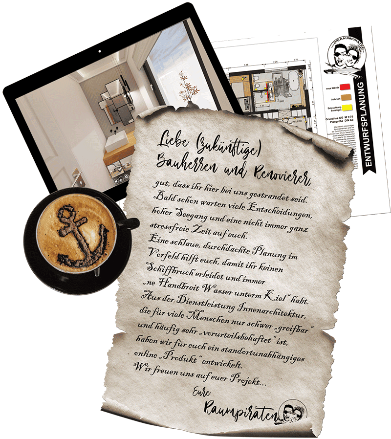AUSGEZEICHNET Basierend auf 54 Bewertungen senta krumpholz25/10/2024Trustindex überprüft, ob die Originalquelle der Bewertung Google ist. Für meine Mutter, die sich räumlich um zwei Drittel verkleinert, suchte ich ein Raumkonzept, das schön und gut durchdacht sein wollte. Aus den eigenen vier Wänden in ein betreutes Wohnen zu ziehen, bedeutet, Altes loslassen, Wichtiges mitnehmen. Es bedeutet aussortieren, Geschichte umwälzen, einmal durch das ganze Leben pflügen. Emotionale Achterbahn. Und dann noch einen Umbau planen und eine neue Einrichtung auswählen? Wie soll das gehen? Und dann wurde ich auf die Raumpiraten aufmerksam. Würden sie es schaffen, uns durch dieses emotionales Projekt zu navigieren? Die Aufgabe war ja nicht geringer, als die Dinge in eine neue Ordnung zu bringen. Kluges Design kann das. Es stellt Funktionalität, Ästhetik und Emotionalität in einen Zusammenhang und eröffnet im Wortsinne neue Räume. Den Raumpiraten ist dies gelungen. Meine sehr skeptische Mutter sagte gestern: „Ich habe das Gefühl, dass ich mich dort sehr wohlfühlen werde.“ Dieser Satz ist eine Sensation. Das Briefing war einfach: die Online-Formulare führen durch den Prozess. Ich lieferte zusätzlich den Grundriss und Fotos der neuen Wohnung. Farblich wünschte sich meine Mutter helle Naturtöne und eine gemütliche Atmosphäre, Barrierefreiheit inbegriffen. Weitere Vorgaben machte ich nicht, um die Kreativität der Raumpiraten nicht einzuschränken. Da ich selbst einen künstlerischen Beruf ausübe, weiß ich, Offenheit zu schätzen. Das Raumkonzept kam in Form einer kommentierten „Raumfahrt“. Yvonne von den Raumpiraten führte uns in einer 3-D-Animation durch die Räume. Wir können vor und zurück gehen und die Präsentation so oft ansehen, wie wir wollen. Die Vorschläge sind umwerfend. Nicht nur, dass sie den „Vibe“ verstanden haben, sondern die Präsentation ist sogar sprachlich auf meine Mutter zugeschnitten. Statt Fachgesimpel gibt es einfühlsame Erläuterungen. Das Raumkonzept ist barrierefrei und voller guter Details. Es gibt Vorschläge zur Raumaufteilung, zur Wand- und Bodengestaltung. Sogar an Tapete, Bilderaufhängungen und Accessoires ist gedacht. Alle vorgeschlagenen Möbel und Tapeten kann man in der beigefügten Einkaufsliste finden. Es gibt zahlreiche Alternativen dazu und die Bezugsquellen sind einfach. Dadurch ersparten wir uns sehr viel Recherchezeit. Wir haben alle Vorschläge übernommen oder nur geringfügig verändert. Es hat mich sehr erstaunt, wie gut die Raumpiraten erfasst haben, was meiner Mutter so sehr entspricht. Damit haben sie über das eigentliche Projekt hinaus in dieser schwierigen Übergangsphase dafür gesorgt, dass aus Angst Vorfreude wurde. In der Umsetzung konnte ich zielgenau einkaufen und Arbeiten systematisch organisieren. Das Ergebnis ist eine glückliche Mutter und eine Tochter, die eine neue Leidenschaft entdeckt hat: umbauen. Vielen Dank, liebe Raumpiraten! Ich empfehle Euch gern weiter. Cornelia Röder10/09/2024Trustindex überprüft, ob die Originalquelle der Bewertung Google ist. Liebe Raumpiraten, Wir bedanken uns von ganzem Herzen für diesen wundervollen Entwurfsplan für unser zukünftiges Zuhause; wir waren sofort schockverliebt und sind wirklich überwältigt, welche mega Ideen Ihr habt einfließen lassen und mit welcher Liebe zum Detail Ihr das alles ausgearbeitet habt! Ihr habt sämtliche Erwartungen von uns um ein Vielfaches übertroffen und wir haben nicht im Traum daran gedacht, dass Ihr so was zaubern könnt.. All unsere Wünsche sind komplett erfüllt und die tollen Extras für unsere beiden Hunde haben uns echt zu Tränen gerührt… Das, was Ihr da für uns geschaffen habt, entspricht wirklich auf allen Ebenen unserer Wunschvorstellung von einem gemütlichen und wohnlichen Zuhause und für die unzähligen Extras wie Beleuchtung, Ofenbank, Küche, Essbereich etc. habt Ihr ein extradickes Dankeschön verdient. Und dass Ihr sogar die Statik schon mitberücksichtigt habt und insgesamt so viele technische Details bedacht habt, ist wirklich hervorragend. Nochmals vielen Dank für Alles Jennifer Kehlbeck19/06/2024Trustindex überprüft, ob die Originalquelle der Bewertung Google ist. Liebe Raumpiraten, wir haben im letzten Jahr ein Dachgeschoss ausgebaut und mit euch in ein Fitness- und Entspannungsraum verwandelt. Besonders hervorzuheben ist hierbei eure Flexibilität hinsichtlich der Planungsgeschwindigkeit, sodass die Bauarbeiten nicht abgebrochen werden mussten. Aber auch die Umsetzung entsprach voll uns ganz unseren Vorstellungen und hat uns die Gestaltung des Raumes stark erleichtert. Nach den tollen Erfahrungen, freuen wir uns nun darauf auch den Rest des Hauses mit euch zu planen 😀 vielen Dank Mario Handke02/06/2024Trustindex überprüft, ob die Originalquelle der Bewertung Google ist. Mit unserem Projekt Ankerplatz Stade gestalten wir ein maritimes Dorf aus umgebauten Schiffscontainern und gestalten so ein Reallabor für den Marktplatz der Zukunft. Dabei verwenden wir einen All-Profit-Ansatz, der Akteure aus Politik, Verwaltung, Wirtschaft, Wissenschaft und Zivilgesellschaft kooperativ mit einbindet. Ein zentrales Projekt ist unser Next-Generation-Jugendcontainer, der einen modernen Workspace für engagierte Jugendgruppen und zugleich ein offener Chillout-Bereich ohne Verzehrzwang beinhalten soll. Für die komplexe Aufgabe der Innenraumgestaltung sind wir über Instagram auf Yvonne und Flo von den Raumpiraten gestoßen und waren bereits vom Internetauftritt wirklich begeistert. Schon das maritime Wording passt nicht nur hervorragend zu unserem Konzept, es zeigt zugleich, wie viel Liebe zum Detail hier bereits in die passenden Formulierungen und Worte investiert werden. Unser Projekt funktioniert nur dank der Pro-Bono-Unterstützung von vielen tollen Partnern und so haben wir bei den Raumpiraten um Support gebeten. Wir waren begeistert, wie herzlich die beiden auf unsere Anfrage reagiert haben und dass 